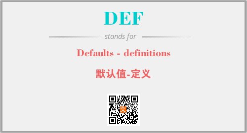 上述内容是“Defaults - definitions”作为“DEF”的缩写,解释为“默认值-定义”时的信息,以及英文缩略词DEF所代表的英文单词,其对应的中文拼音、详细解释以及在英文中的流行度和相关分类、应用领域及应用示例等。