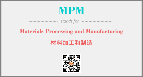 上述内容是“Materials Processing and Manufacturing”作为“MPM”的缩写,解释为“材料加工和制造”时的信息,以及英文缩略词MPM所代表的英文单词,其对应的中文拼音、详细解释以及在英文中的流行度和相关分类、应用领域及应用示例等。