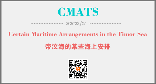 英文缩略词“CMATS”经常作为“Certain Maritime Arrangements in the Timor Sea”的英文缩写来使用,中文表示:“帝汶海的某些海上安排”。本文将详细介绍英文缩写词CMATS所代表英文单词,其对应的中文拼音、详细解释以及在英语中的流行度。此外,还有关于缩略词CMATS的分类、应用领域及相关应用示例等。