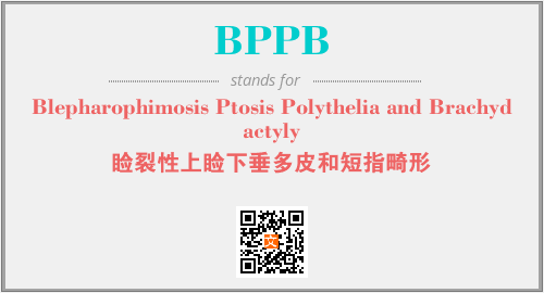 英文缩略词“BPPB”经常作为“Blepharophimosis Ptosis Polythelia and Brachydactyly”的英文缩写来使用,中文表示:“睑裂性上睑下垂多皮和短指畸形”。本文将详细介绍英文缩写词BPPB所代表英文单词,其对应的中文拼音、详细解释以及在英语中的流行度。此外,还有关于缩略词BPPB的分类、应用领域及相关应用示例等。