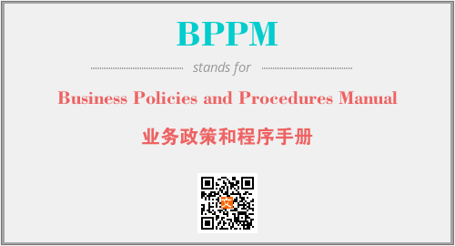 英文缩略词“BPPM”经常作为“Business Policies and Procedures Manual”的英文缩写来使用,中文表示:“业务政策和程序手册”。本文将详细介绍英文缩写词BPPM所代表英文单词,其对应的中文拼音、详细解释以及在英语中的流行度。此外,还有关于缩略词BPPM的分类、应用领域及相关应用示例等。