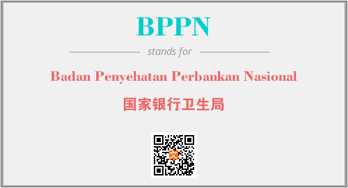 英文缩略词“BPPN”经常作为“Badan Penyehatan Perbankan Nasional”的英文缩写来使用,中文表示:“国家银行卫生局”。本文将详细介绍英文缩写词BPPN所代表英文单词,其对应的中文拼音、详细解释以及在英语中的流行度。此外,还有关于缩略词BPPN的分类、应用领域及相关应用示例等。