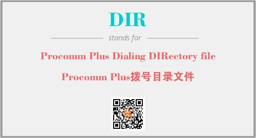 英文缩略词“DIR”经常作为“Procomm Plus Dialing DIRectory file”的英文缩写来使用,中文表示:“Procomm Plus拨号目录文件”。本文将详细介绍英文缩写词DIR所代表英文单词,其对应的中文拼音、详细解释以及在英语中的流行度。此外,还有关于缩略词DIR的分类、应用领域及相关应用示例等。