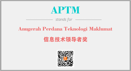 英文缩略词“APTM”经常作为“Anugerah Perdana Teknologi Maklumat”的英文缩写来使用,中文表示:“信息技术领导者奖”。本文将详细介绍英文缩写词APTM所代表英文单词,其对应的中文拼音、详细解释以及在英语中的流行度。此外,还有关于缩略词APTM的分类、应用领域及相关应用示例等。