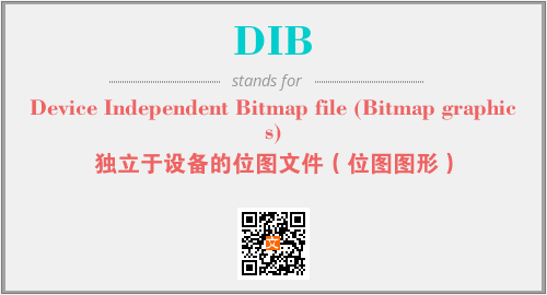 上述内容是“Device Independent Bitmap file (Bitmap graphics)”作为“DIB”的缩写,解释为“独立于设备的位图文件(位图图形)”时的信息,以及英文缩略词DIB所代表的英文单词,其对应的中文拼音、详细解释以及在英文中的流行度和相关分类、应用领域及应用示例等。