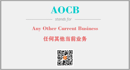 上述内容是“Any Other Current Business”作为“AOCB”的缩写,解释为“任何其他当前业务”时的信息,以及英文缩略词AOCB所代表的英文单词,其对应的中文拼音、详细解释以及在英文中的流行度和相关分类、应用领域及应用示例等。