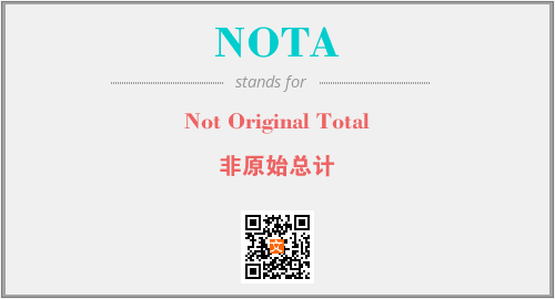 上述内容是“Not Original Total”作为“NOTA”的缩写,解释为“非原始总计”时的信息,以及英文缩略词NOTA所代表的英文单词,其对应的中文拼音、详细解释以及在英文中的流行度和相关分类、应用领域及应用示例等。