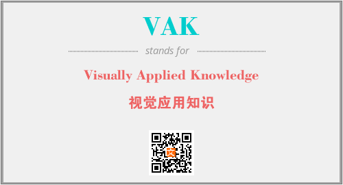 英文缩略词“VAK”经常作为“Visually Applied Knowledge”的英文缩写来使用,中文表示:“视觉应用知识”。本文将详细介绍英文缩写词VAK所代表英文单词,其对应的中文拼音、详细解释以及在英语中的流行度。此外,还有关于缩略词VAK的分类、应用领域及相关应用示例等。