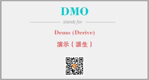 上述内容是“Demo (Derive)”作为“DMO”的缩写,解释为“演示(派生)”时的信息,以及英文缩略词DMO所代表的英文单词,其对应的中文拼音、详细解释以及在英文中的流行度和相关分类、应用领域及应用示例等。