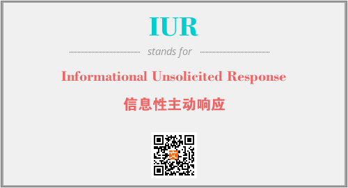 英文缩略词“IUR”经常作为“Informational Unsolicited Response”的英文缩写来使用,中文表示:“信息性主动响应”。本文将详细介绍英文缩写词IUR所代表英文单词,其对应的中文拼音、详细解释以及在英语中的流行度。此外,还有关于缩略词IUR的分类、应用领域及相关应用示例等。