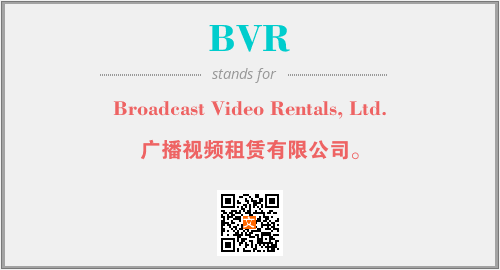 上述内容是“Broadcast Video Rentals, Ltd.”作为“BVR”的缩写,解释为“广播视频租赁有限公司。”时的信息,以及英文缩略词BVR所代表的英文单词,其对应的中文拼音、详细解释以及在英文中的流行度和相关分类、应用领域及应用示例等。