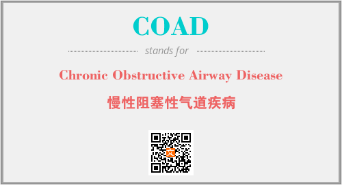 上述内容是“Chronic Obstructive Airway Disease”作为“COAD”的缩写,解释为“慢性阻塞性气道疾病”时的信息,以及英文缩略词COAD所代表的英文单词,其对应的中文拼音、详细解释以及在英文中的流行度和相关分类、应用领域及应用示例等。