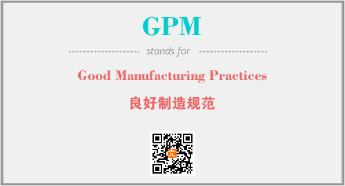 英文缩略词“GPM”经常作为“Good Manufacturing Practices”的英文缩写来使用,中文表示:“良好制造规范”。本文将详细介绍英文缩写词GPM所代表英文单词,其对应的中文拼音、详细解释以及在英语中的流行度。此外,还有关于缩略词GPM的分类、应用领域及相关应用示例等。