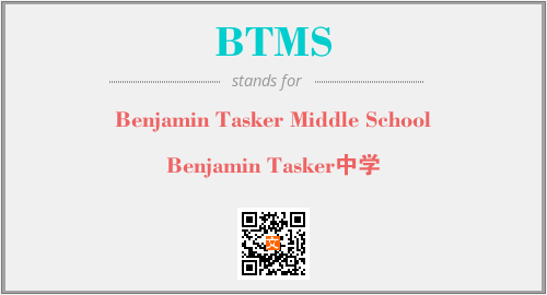 上述内容是“Benjamin Tasker Middle School”作为“BTMS”的缩写,解释为“Benjamin Tasker中学”时的信息,以及英文缩略词BTMS所代表的英文单词,其对应的中文拼音、详细解释以及在英文中的流行度和相关分类、应用领域及应用示例等。