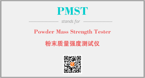 上述内容是“Powder Mass Strength Tester”作为“PMST”的缩写,解释为“粉末质量强度测试仪”时的信息,以及英文缩略词PMST所代表的英文单词,其对应的中文拼音、详细解释以及在英文中的流行度和相关分类、应用领域及应用示例等。