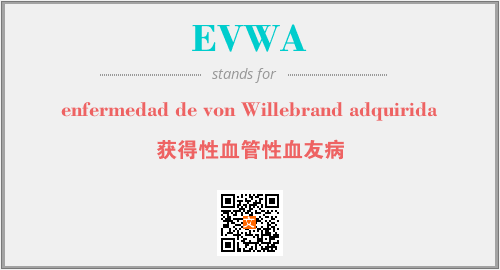 上述内容是“enfermedad de von Willebrand adquirida”作为“EVWA”的缩写,解释为“获得性血管性血友病”时的信息,以及英文缩略词EVWA所代表的英文单词,其对应的中文拼音、详细解释以及在英文中的流行度和相关分类、应用领域及应用示例等。