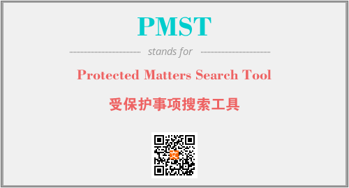 上述内容是“Protected Matters Search Tool”作为“PMST”的缩写,解释为“受保护事项搜索工具”时的信息,以及英文缩略词PMST所代表的英文单词,其对应的中文拼音、详细解释以及在英文中的流行度和相关分类、应用领域及应用示例等。