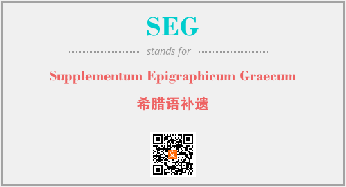 上述内容是“Supplementum Epigraphicum Graecum”作为“SEG”的缩写,解释为“希腊语补遗”时的信息,以及英文缩略词SEG所代表的英文单词,其对应的中文拼音、详细解释以及在英文中的流行度和相关分类、应用领域及应用示例等。