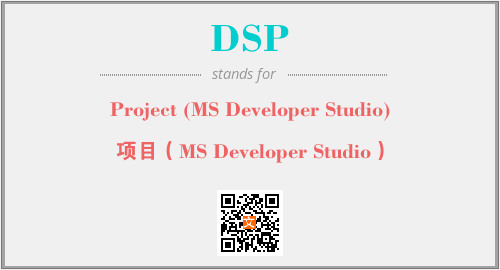 英文缩略词“DSP”经常作为“Project (MS Developer Studio)”的英文缩写来使用,中文表示:“项目(MS Developer Studio)”。本文将详细介绍英文缩写词DSP所代表英文单词,其对应的中文拼音、详细解释以及在英语中的流行度。此外,还有关于缩略词DSP的分类、应用领域及相关应用示例等。