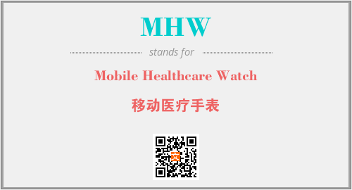 上述内容是“Mobile Healthcare Watch”作为“MHW”的缩写,解释为“移动医疗手表”时的信息,以及英文缩略词MHW所代表的英文单词,其对应的中文拼音、详细解释以及在英文中的流行度和相关分类、应用领域及应用示例等。