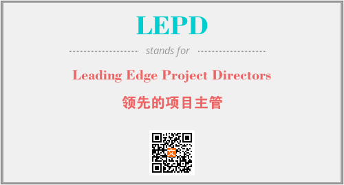 英文缩略词“LEPD”经常作为“Leading Edge Project Directors”的英文缩写来使用,中文表示:“领先的项目主管”。本文将详细介绍英文缩写词LEPD所代表英文单词,其对应的中文拼音、详细解释以及在英语中的流行度。此外,还有关于缩略词LEPD的分类、应用领域及相关应用示例等。