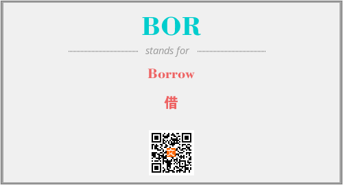 英文缩略词“BOR”经常作为“Borrow”的英文缩写来使用,中文表示:“借”。本文将详细介绍英文缩写词BOR所代表英文单词,其对应的中文拼音、详细解释以及在英语中的流行度。此外,还有关于缩略词BOR的分类、应用领域及相关应用示例等。