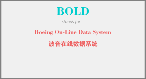 英文缩略词“BOLD”经常作为“Boeing On-Line Data System”的英文缩写来使用,中文表示:“波音在线数据系统”。本文将详细介绍英文缩写词BOLD所代表英文单词,其对应的中文拼音、详细解释以及在英语中的流行度。此外,还有关于缩略词BOLD的分类、应用领域及相关应用示例等。