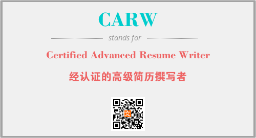 以上为Certified Advanced Resume Writer英文缩略词CARW的中文解释,以及该英文缩写在英语的流行度、分类和应用领域方面的信息。