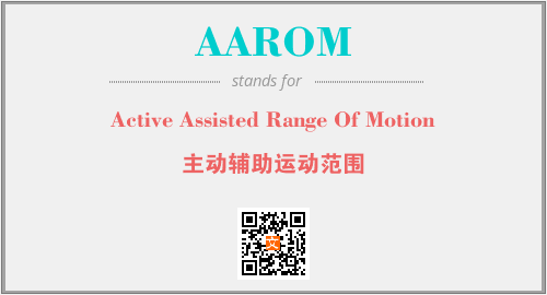 上述内容是“Active Assisted Range Of Motion”作为“AAROM”的缩写,解释为“主动辅助运动范围”时的信息,以及英文缩略词AAROM所代表的英文单词,其对应的中文拼音、详细解释以及在英文中的流行度和相关分类、应用领域及应用示例等。
