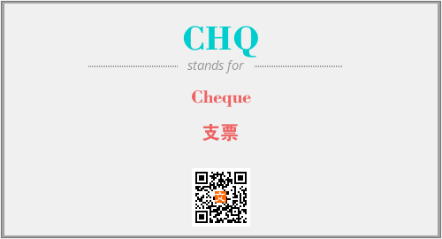 英文缩略词“CHQ”经常作为“Cheque”的英文缩写来使用,中文表示:“支票”。本文将详细介绍英文缩写词CHQ所代表英文单词,其对应的中文拼音、详细解释以及在英语中的流行度。此外,还有关于缩略词CHQ的分类、应用领域及相关应用示例等。
