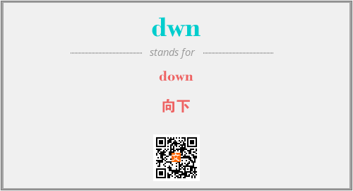 上述内容是“down”作为“dwn”的缩写,解释为“向下”时的信息,以及英文缩略词dwn所代表的英文单词,其对应的中文拼音、详细解释以及在英文中的流行度和相关分类、应用领域及应用示例等。