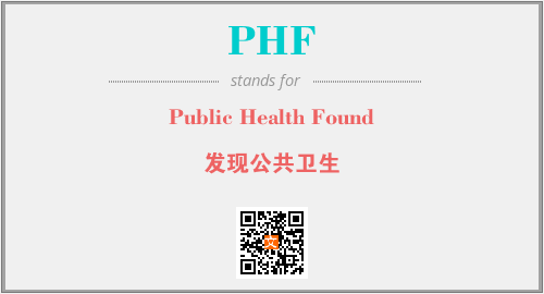 上述内容是“Public Health Found”作为“PHF”的缩写,解释为“发现公共卫生”时的信息,以及英文缩略词PHF所代表的英文单词,其对应的中文拼音、详细解释以及在英文中的流行度和相关分类、应用领域及应用示例等。