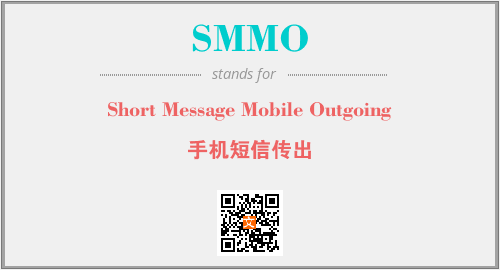 英文缩略词“SMMO”经常作为“Short Message Mobile Outgoing”的英文缩写来使用,中文表示:“手机短信传出”。本文将详细介绍英文缩写词SMMO所代表英文单词,其对应的中文拼音、详细解释以及在英语中的流行度。此外,还有关于缩略词SMMO的分类、应用领域及相关应用示例等。