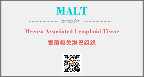 英文缩略词“MALT”经常作为“Mycosa Associated Lymphoid Tissue”的英文缩写来使用,中文表示:“霉菌相关淋巴组织”。本文将详细介绍英文缩写词MALT所代表英文单词,其对应的中文拼音、详细解释以及在英语中的流行度。此外,还有关于缩略词MALT的分类、应用领域及相关应用示例等。