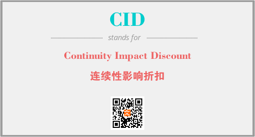 上述内容是“Continuity Impact Discount”作为“CID”的缩写,解释为“连续性影响折扣”时的信息,以及英文缩略词CID所代表的英文单词,其对应的中文拼音、详细解释以及在英文中的流行度和相关分类、应用领域及应用示例等。