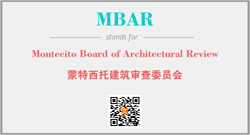 上述内容是“Montecito Board of Architectural Review”作为“MBAR”的缩写,解释为“蒙特西托建筑审查委员会”时的信息,以及英文缩略词MBAR所代表的英文单词,其对应的中文拼音、详细解释以及在英文中的流行度和相关分类、应用领域及应用示例等。