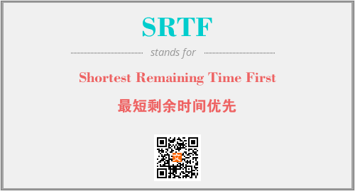 上述内容是“Shortest Remaining Time First”作为“SRTF”的缩写,解释为“最短剩余时间优先”时的信息,以及英文缩略词SRTF所代表的英文单词,其对应的中文拼音、详细解释以及在英文中的流行度和相关分类、应用领域及应用示例等。