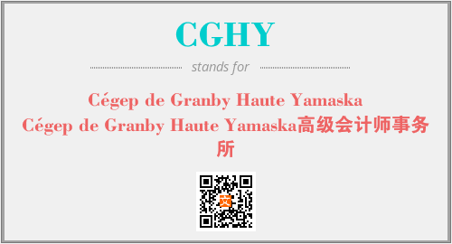 英文缩略词“CGHY”经常作为“Cégep de Granby Haute Yamaska”的英文缩写来使用,中文表示:“Cégep de Granby Haute Yamaska高级会计师事务所”。本文将详细介绍英文缩写词CGHY所代表英文单词,其对应的中文拼音、详细解释以及在英语中的流行度。此外,还有关于缩略词CGHY的分类、应用领域及相关应用示例等。