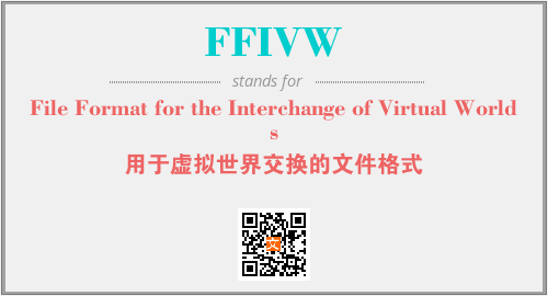 上述内容是“File Format for the Interchange of Virtual Worlds”作为“FFIVW”的缩写,解释为“用于虚拟世界交换的文件格式”时的信息,以及英文缩略词FFIVW所代表的英文单词,其对应的中文拼音、详细解释以及在英文中的流行度和相关分类、应用领域及应用示例等。