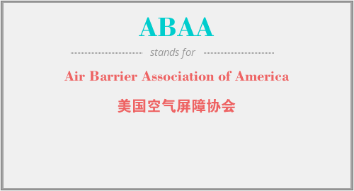 英文缩略词“ABAA”经常作为“Air Barrier Association of America”的英文缩写来使用,中文表示:“美国空气屏障协会”。本文将详细介绍英文缩写词ABAA所代表英文单词,其对应的中文拼音、详细解释以及在英语中的流行度。此外,还有关于缩略词ABAA的分类、应用领域及相关应用示例等。