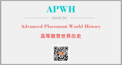 英文缩略词“APWH”经常作为“Advanced Placement World History”的英文缩写来使用,中文表示:“高等教育世界历史”。本文将详细介绍英文缩写词APWH所代表英文单词,其对应的中文拼音、详细解释以及在英语中的流行度。此外,还有关于缩略词APWH的分类、应用领域及相关应用示例等。