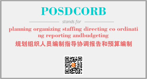英文缩略词“POSDCORB”经常作为“planning organizing staffing directing co ordinating reporting andbudgeting”的英文缩写来使用,中文表示:“规划组织人员编制指导协调报告和预算编制”。本文将详细介绍英文缩写词POSDCORB所代表英文单词,其对应的中文拼音、详细解释以及在英语中的流行度。此外,还有关于缩略词POSDCORB的分类、应用领域及相关应用示例等。