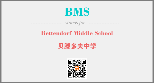 上述内容是“Bettendorf Middle School”作为“BMS”的缩写,解释为“贝滕多夫中学”时的信息,以及英文缩略词BMS所代表的英文单词,其对应的中文拼音、详细解释以及在英文中的流行度和相关分类、应用领域及应用示例等。