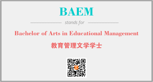 上述内容是“Bachelor of Arts in Educational Management”作为“BAEM”的缩写,解释为“教育管理文学学士”时的信息,以及英文缩略词BAEM所代表的英文单词,其对应的中文拼音、详细解释以及在英文中的流行度和相关分类、应用领域及应用示例等。