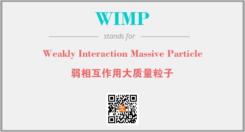 上述内容是“Weakly Interaction Massive Particle”作为“WIMP”的缩写,解释为“弱相互作用大质量粒子”时的信息,以及英文缩略词WIMP所代表的英文单词,其对应的中文拼音、详细解释以及在英文中的流行度和相关分类、应用领域及应用示例等。
