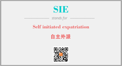 上述内容是“Self initiated expatriation”作为“SIE”的缩写,解释为“自主外派”时的信息,以及英文缩略词SIE所代表的英文单词,其对应的中文拼音、详细解释以及在英文中的流行度和相关分类、应用领域及应用示例等。