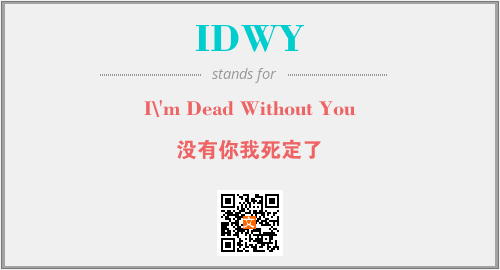 上述内容是“I\'m Dead Without You”作为“IDWY”的缩写,解释为“没有你我死定了”时的信息,以及英文缩略词IDWY所代表的英文单词,其对应的中文拼音、详细解释以及在英文中的流行度和相关分类、应用领域及应用示例等。