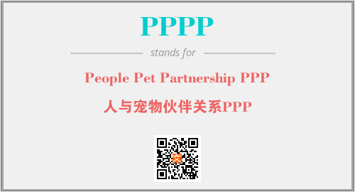 英文缩略词“PPPP”经常作为“People Pet Partnership PPP”的英文缩写来使用,中文表示:“人与宠物伙伴关系PPP”。本文将详细介绍英文缩写词PPPP所代表英文单词,其对应的中文拼音、详细解释以及在英语中的流行度。此外,还有关于缩略词PPPP的分类、应用领域及相关应用示例等。