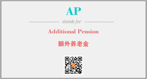 上述内容是“Additional Pension”作为“AP”的缩写,解释为“额外养老金”时的信息,以及英文缩略词AP所代表的英文单词,其对应的中文拼音、详细解释以及在英文中的流行度和相关分类、应用领域及应用示例等。