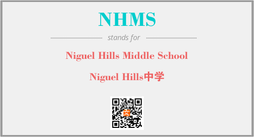 以上为Niguel Hills Middle School英文缩略词NHMS的中文解释,以及该英文缩写在英语的流行度、分类和应用领域方面的信息。